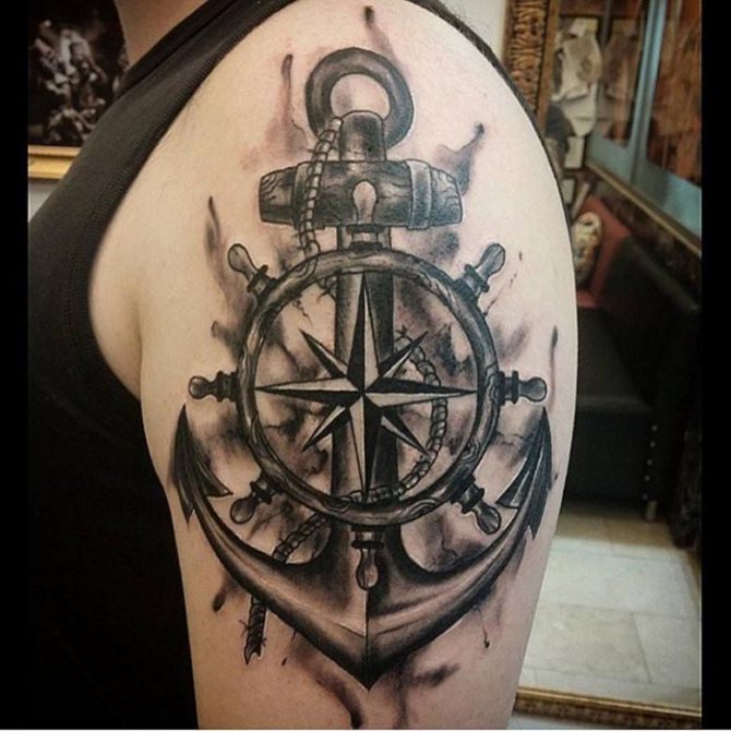- La barre du navire est l'incarnation de l'amour des voyages en mer, de la capacité à tracer sa propre route et à suivre ses plans. Ce tatouage de la marine est souvent porté par les capitaines et les timoniers. En alliance avec les ancres, les cordes - la capacité de vaincre les obstacles.