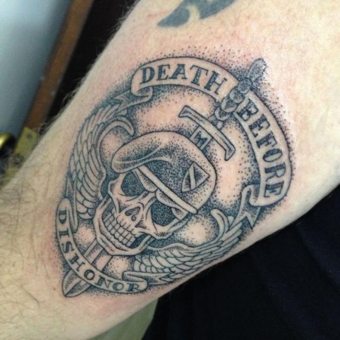 - Les inscriptions sont le nom de la marine, les numéros d'unité ou de base de la marine, le nom du navire, le groupe sanguin et le facteur Rh. Très populaire dans la marine, le tatouage est constitué de différentes abréviations ou noms de marines : Nord, Baltique, Mer Noire, Pacifique.