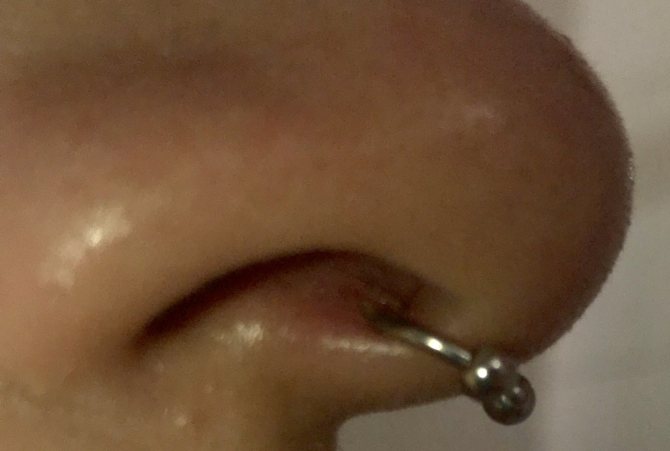 Si le nez fait mal après la ponction et qu'un liquide collant et translucide s'écoule de la plaie, il faut consulter un bricoleur ou un dermatologue. Vous devez essuyer le bijou, surtout près du fermoir, car beaucoup de bactéries s'y accumulent.