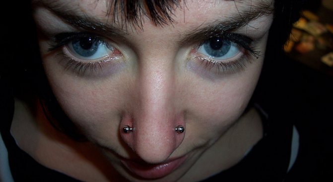 Sur la photo du piercing du nez, vous pouvez voir qu'il convient aussi bien au côté droit qu'au côté gauche du visage. Et, en aucun cas, elle ne ternit l'image, mais ne fait que souligner le caractère sophistiqué de l'apparence.