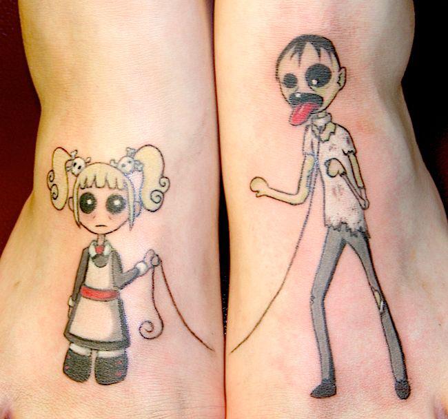 Tatouages humoristiques en binôme : motifs inhabituels en couleur