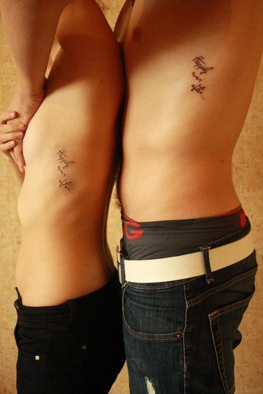 Souvent, les couples choisissent soit une inscription pour le tatouage, soit un dessin. Tous deux sont très romantiques et montrent des sentiments forts l'un pour l'autre. L'artiste peut suggérer un motif, un croquis soigné ou une inscription dans une langue étrangère.