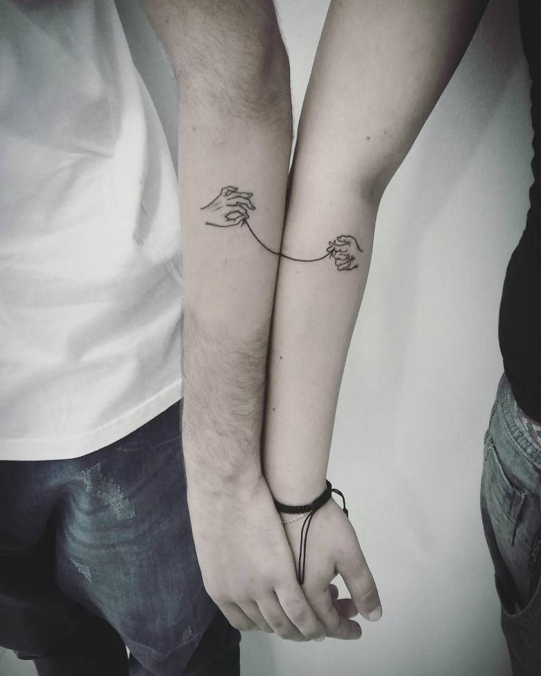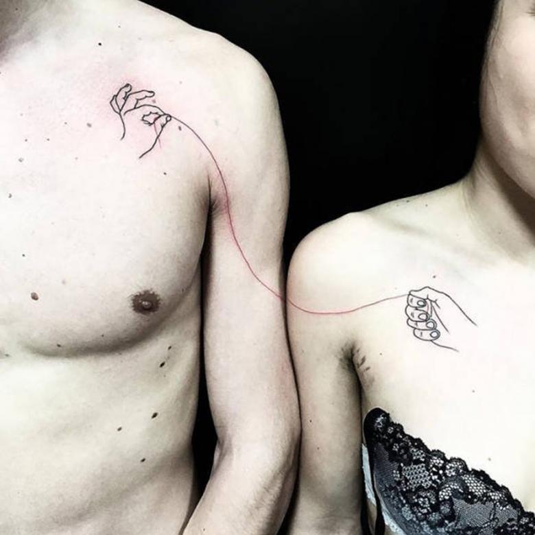 Les tatouages de couple sont une démarche ambiguë qui pose la stabilité d'une relation. Ces tatouages sont généralement réalisés par des personnes qui ont confiance l'une en l'autre. La signification d'un tatouage de couple est déterminée par celui qui le porte.