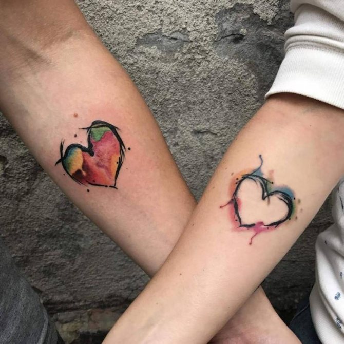 Les tatouages dont l'histoire est basée sur des amis sont devenus très populaires. L'amitié et l'affection mutuelle peuvent être si fortes que les personnes ne peuvent imaginer l'existence l'une sans l'autre. Cela inclut les amis et les petites amies, les couples amoureux. Les émotions peuvent être si fortes qu'ils sont prêts à graver leur affection mutuelle sur leur propre corps, rendant ainsi leurs sentiments publics.