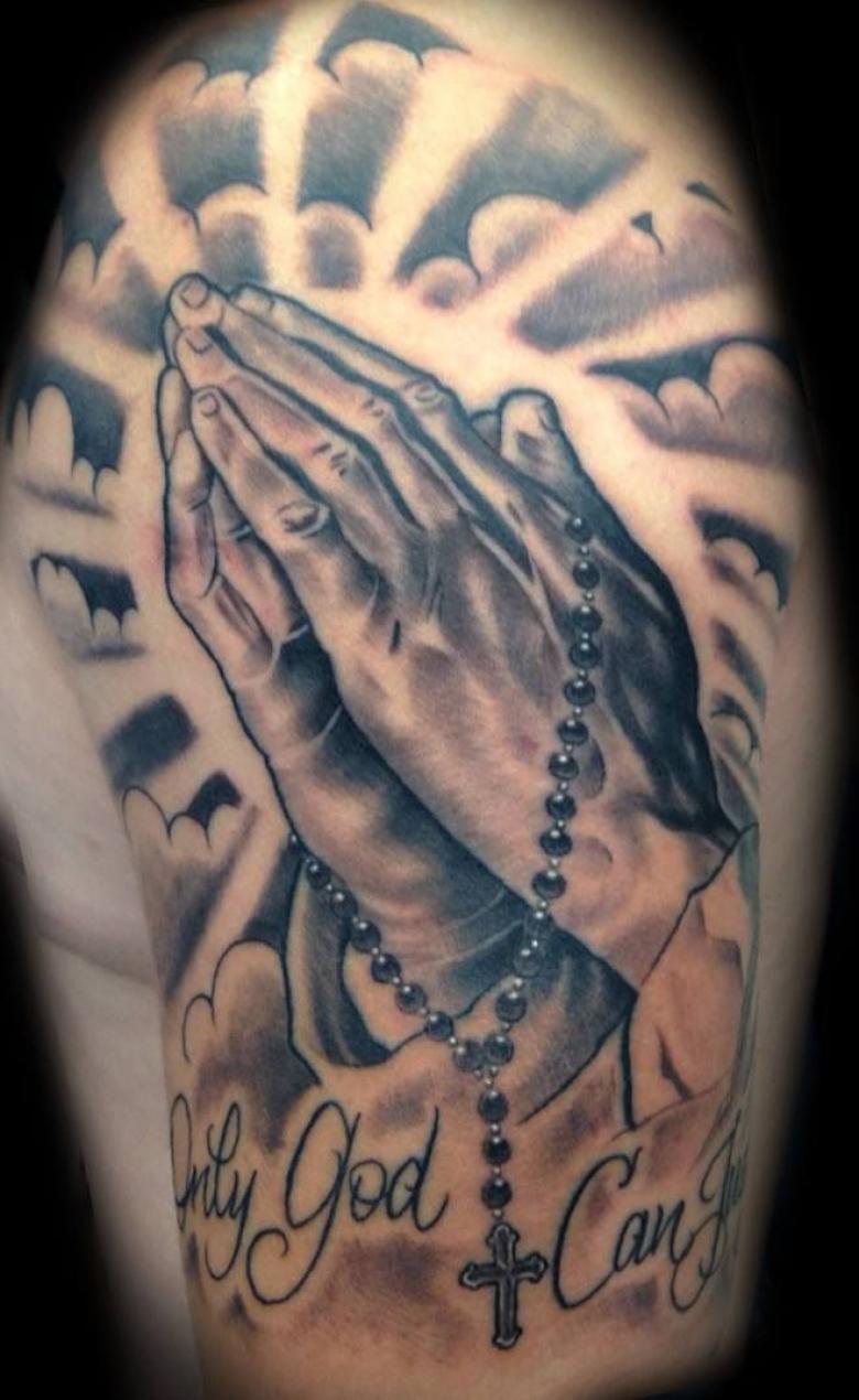 Lorsque vous n'avez pas la force de relever un défi, un tatouage de prière vous rappelle les promesses et les préceptes de la tradition religieuse. On peut se tourner vers Dieu ou les dieux à un moment critique, lorsque l'espoir de changer la situation a presque disparu.