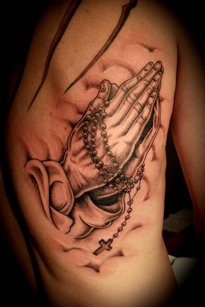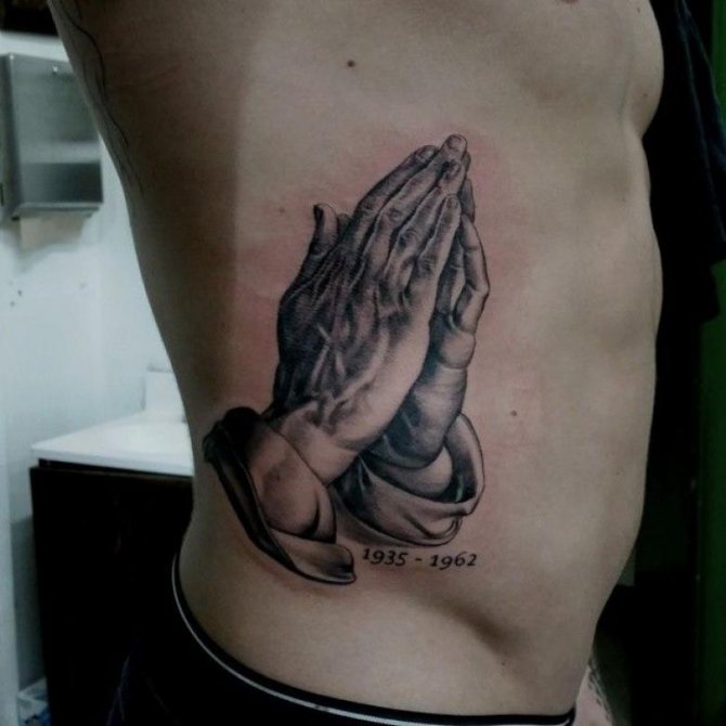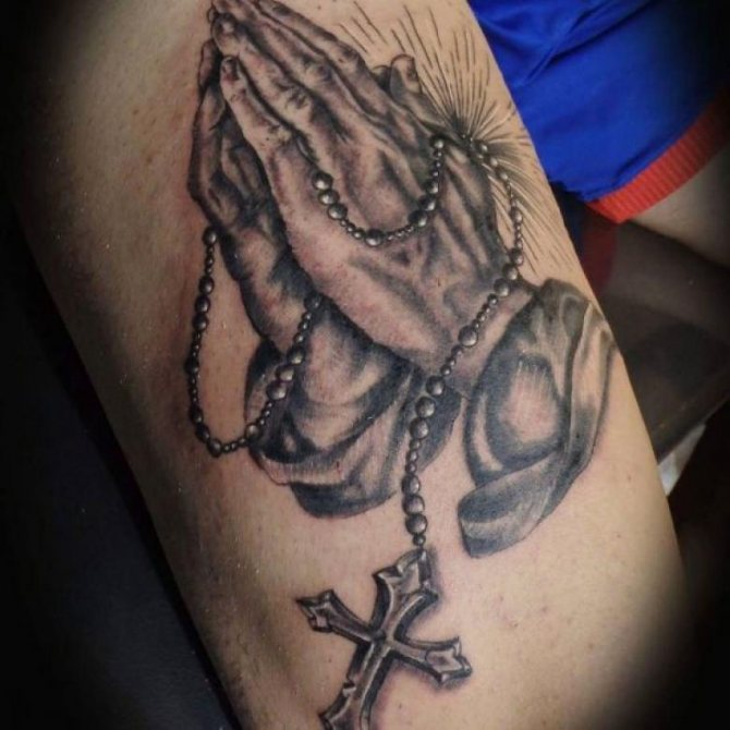 Un tatouage de main priant est destiné à rappeler l'existence du monde spirituel, parallèlement au monde matériel. Une personne ne doit pas être immergée uniquement dans la poursuite des biens terrestres, il est toujours bon de se souvenir de Dieu et des puissances supérieures. La prière permet d'établir un lien avec ces puissances, de se remplir de force et d'inspiration et de combler le vide de l'âme.