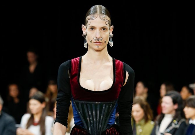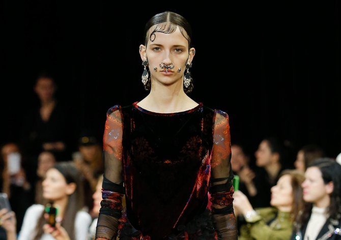 Un à un, les mannequins sont apparus sur le podium ornés d'anneaux de septum surdimensionnés et de strass, avec des boucles lissées le long du visage. Le défilé a été l'un des plus discutés de la carrière de l'actuel maître d'œuvre de Burberry et a été si mémorable que la tendance des anneaux de nez a rapidement pris de l'ampleur.