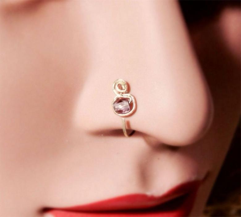 Pour les femmes, les meilleurs endroits pour porter des bijoux sont les ailes et le bout du nez. Les bijoux en or, avec l'ajout de pierres précieuses et semi-précieuses, seront mignons et ajouteront une touche exotique aux traits du visage.