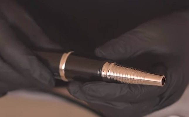 Machine à tatouer à stylo rotatif - est la machine à tatouer la plus légère et la plus ergonomique disponible. Sa taille, son poids et son épaisseur sont similaires à ceux d'un grand marqueur. Cette compacité vous permet de travailler sur les plus petits détails. Cependant, elle se fait au prix d'une faible puissance et de la nécessité de repasser le contour, ce qui augmente la douleur et le traumatisme du tatouage.