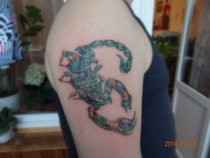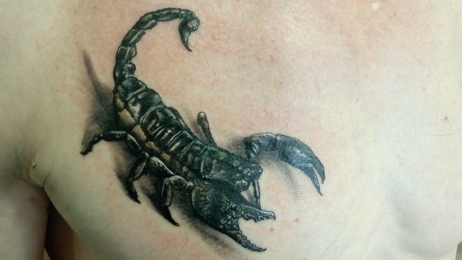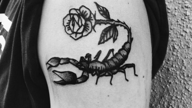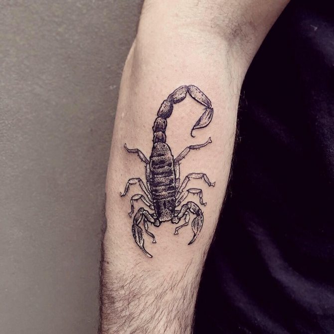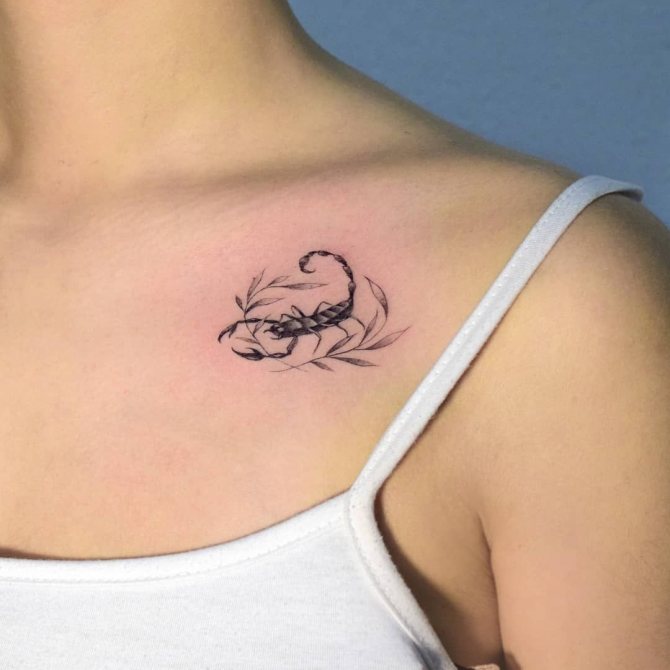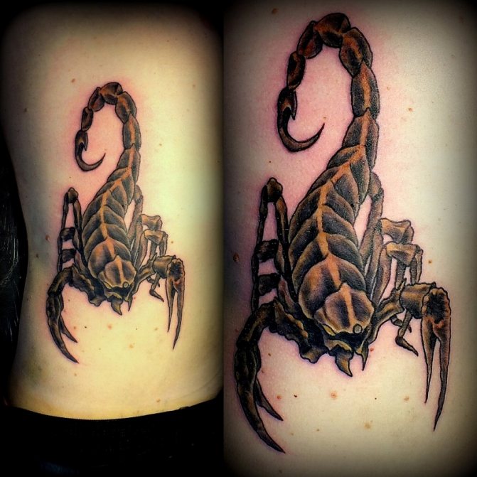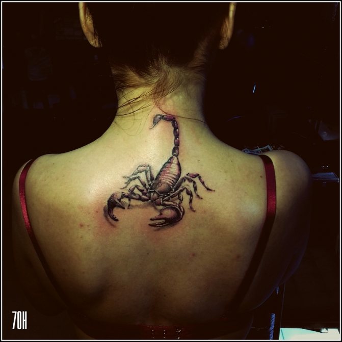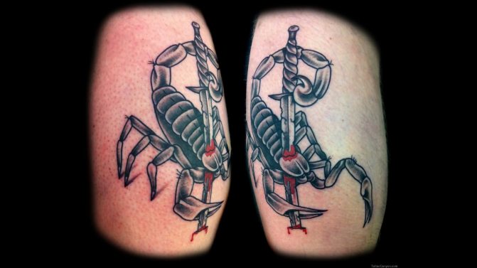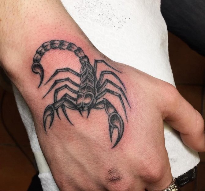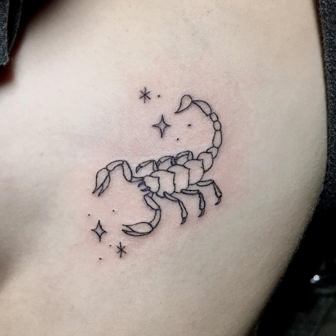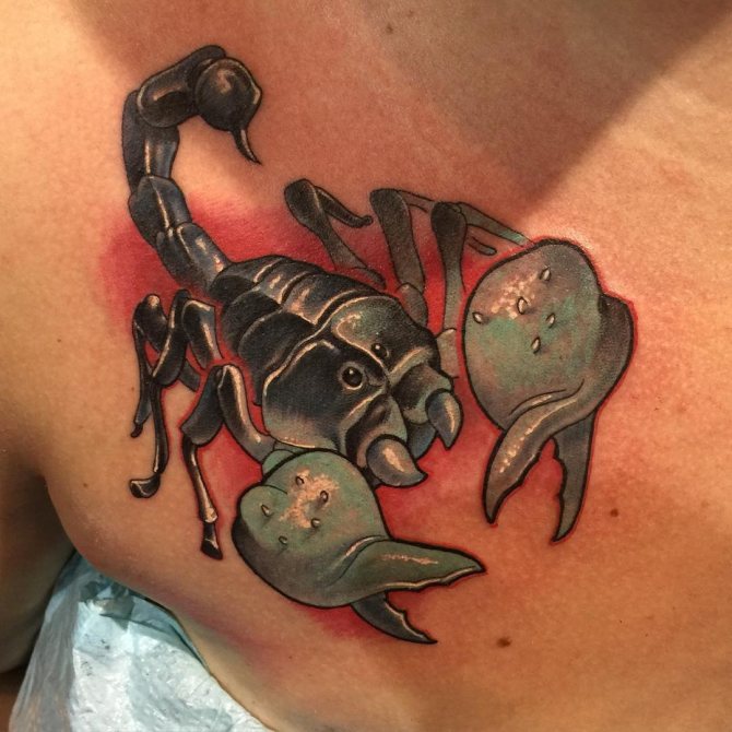 Le Scorpion fait référence à l'élément de l'eau et est sous le patronage de deux planètes - Mars et Pluton, ce qui affecte non seulement l'originalité de la personne née sous cette constellation, mais aussi la signification du croquis lui-même. En premier lieu, le tatouage Scorpion est une démonstration de force, d'endurance, d'arrogance et de capacité à atteindre ses objectifs à n'importe quel prix. Les propriétaires de ce tatouage sont ambitieux et fiers. Ils peuvent être des amis loyaux et des défenseurs courageux. La détermination, l'entêtement et la volonté sont parfaitement combinés dans une telle personnalité avec une bonne intuition, l'énergie sexuelle et la noblesse. Cependant, en dépit de ces qualités positives, les Scorpions sont très susceptibles, jaloux et rancuniers. Elles ne pardonnent pas la trahison, peuvent être très secrètes et ne craignent pas la solitude.