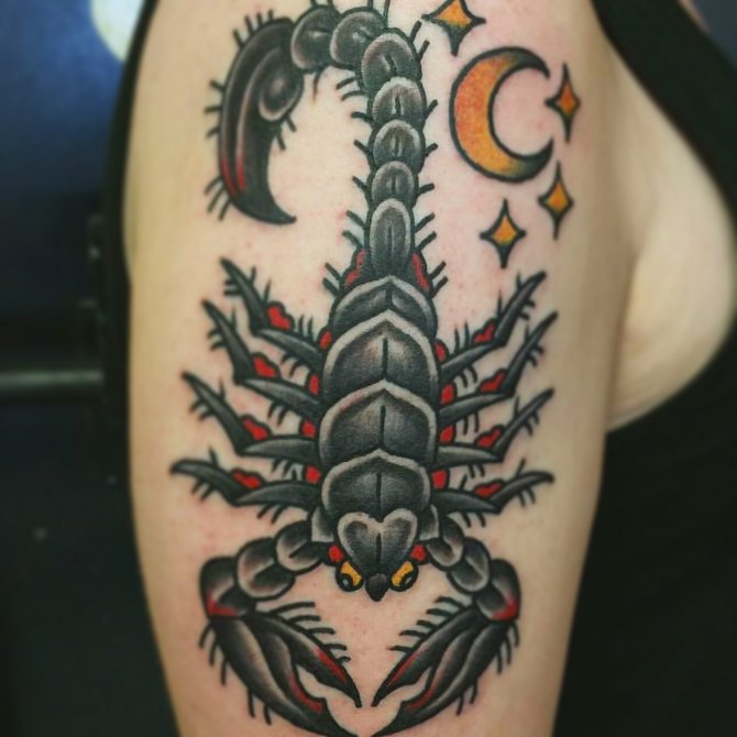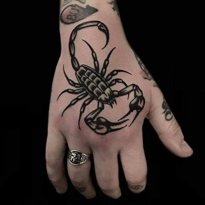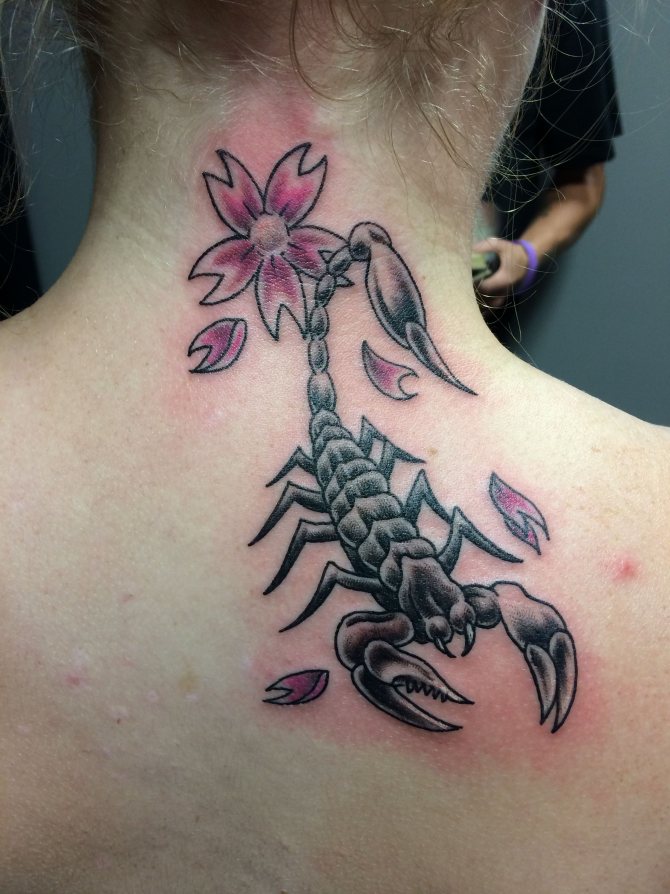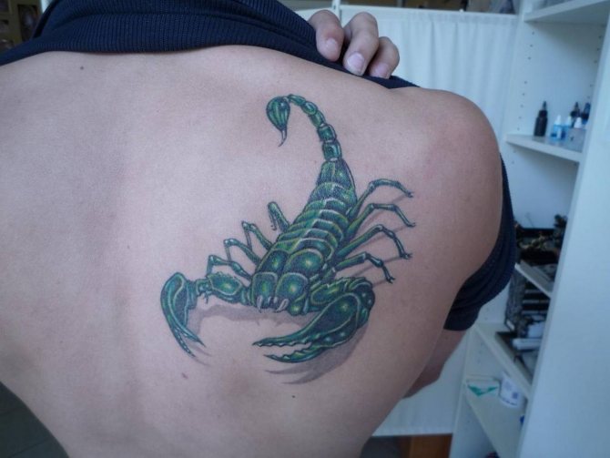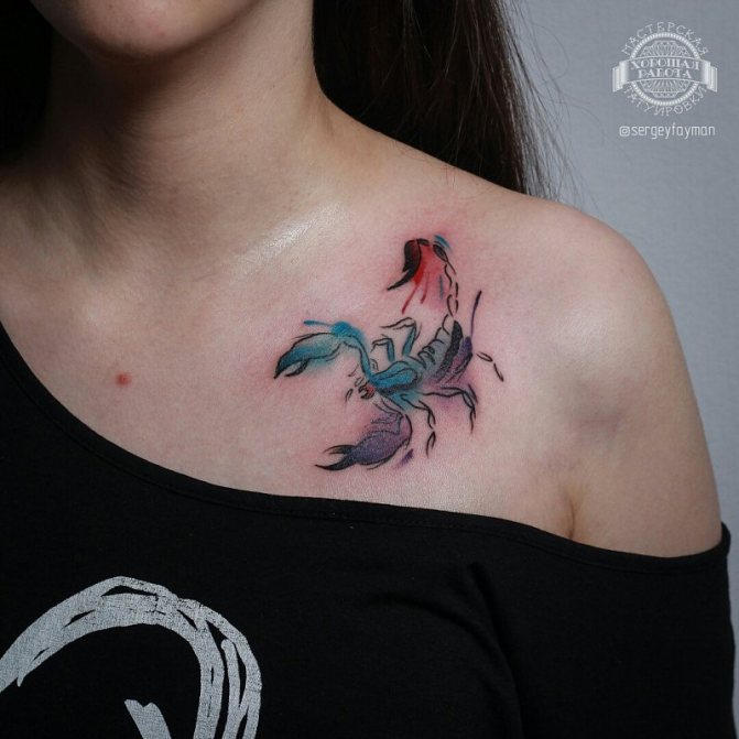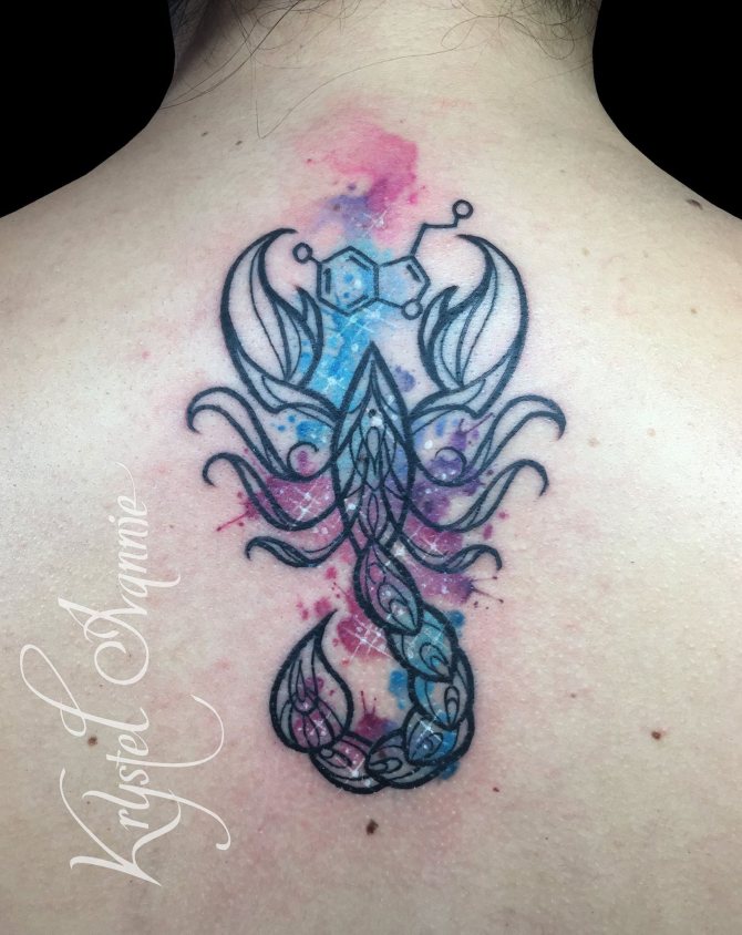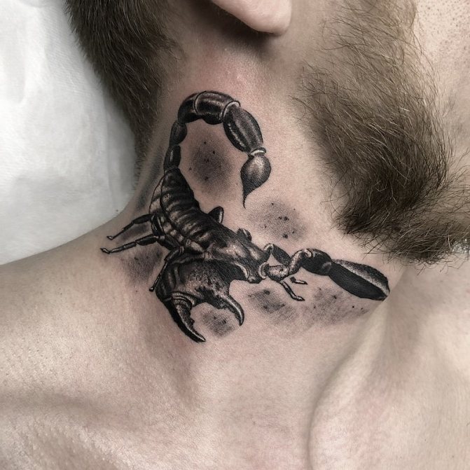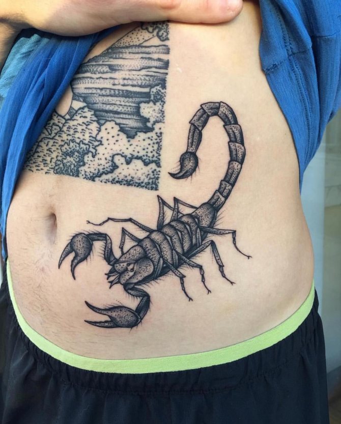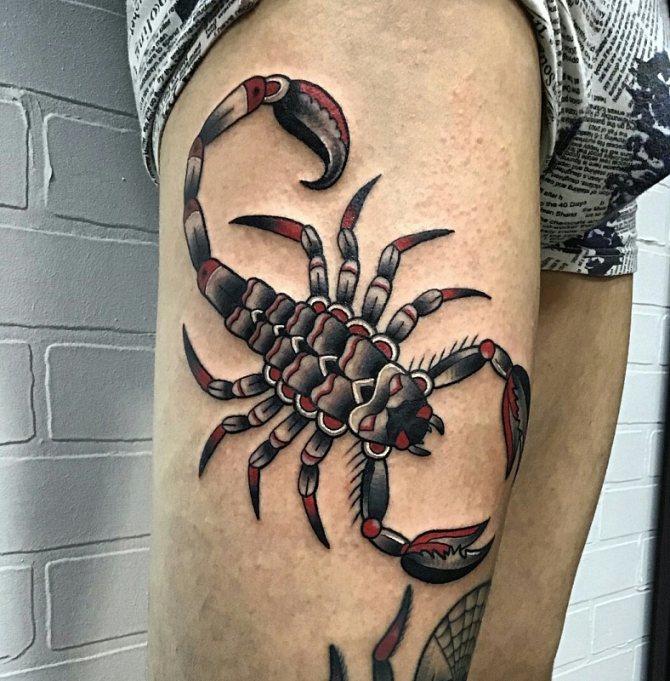 Le Scorpion fait référence à l'élément de l'eau et est sous le patronage de deux planètes - Mars et Pluton, ce qui affecte non seulement l'originalité de la personne née sous cette constellation, mais aussi la signification du croquis lui-même. En premier lieu, le tatouage Scorpion est une démonstration de force, d'endurance, d'arrogance et de capacité à atteindre ses objectifs à n'importe quel prix. Les propriétaires de ce tatouage sont ambitieux et fiers. Ils peuvent être des amis loyaux et des défenseurs courageux. La détermination, l'entêtement et la volonté sont parfaitement combinés dans une telle personnalité avec une bonne intuition, l'énergie sexuelle et la noblesse. Cependant, en dépit de ces qualités positives, les Scorpions sont très susceptibles, jaloux et rancuniers. Elles ne pardonnent pas la trahison, peuvent être très secrètes et ne craignent pas la solitude.