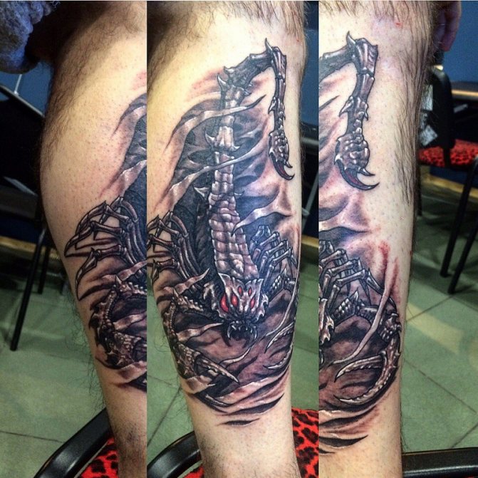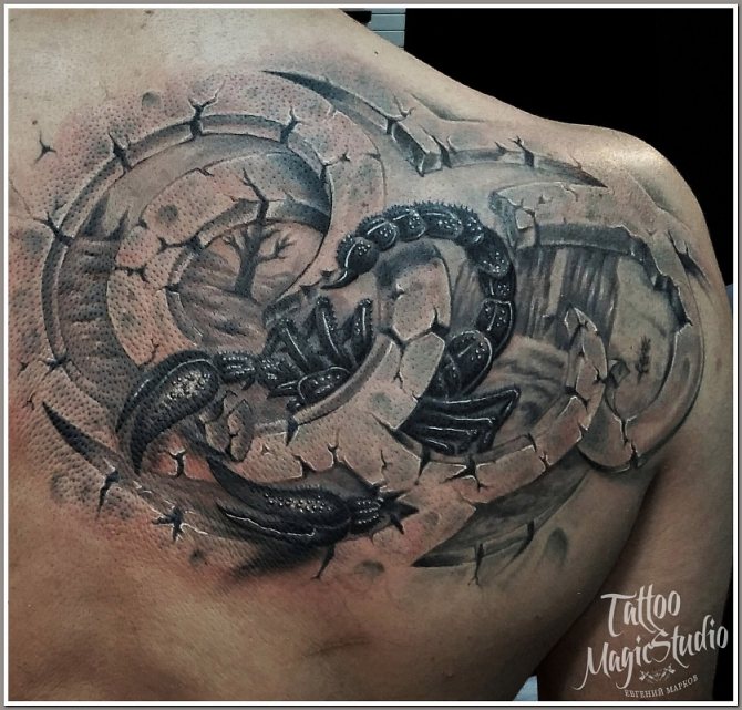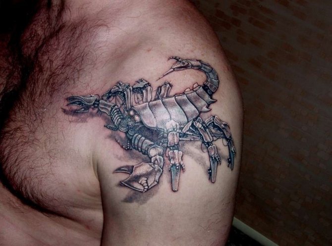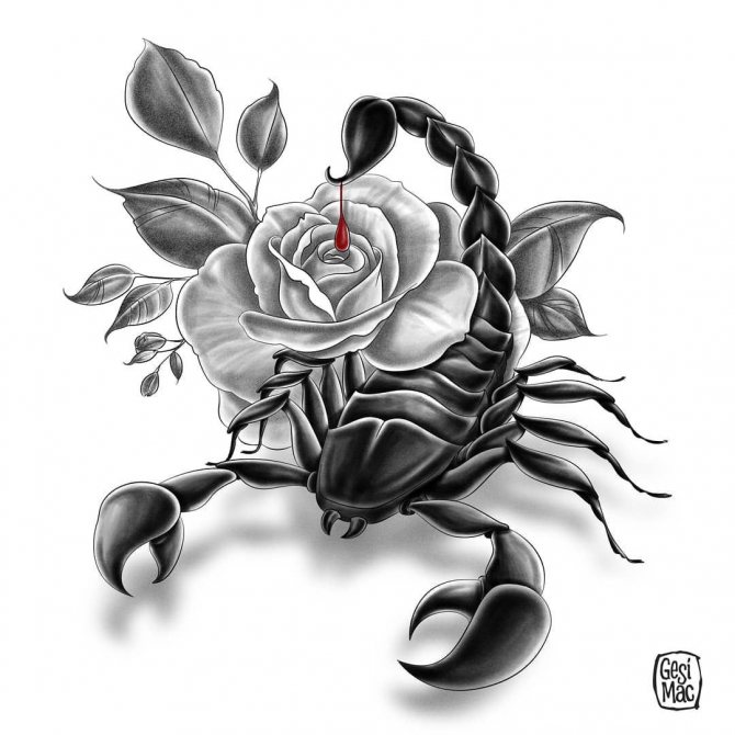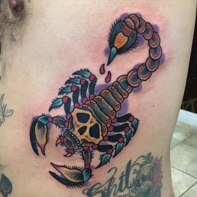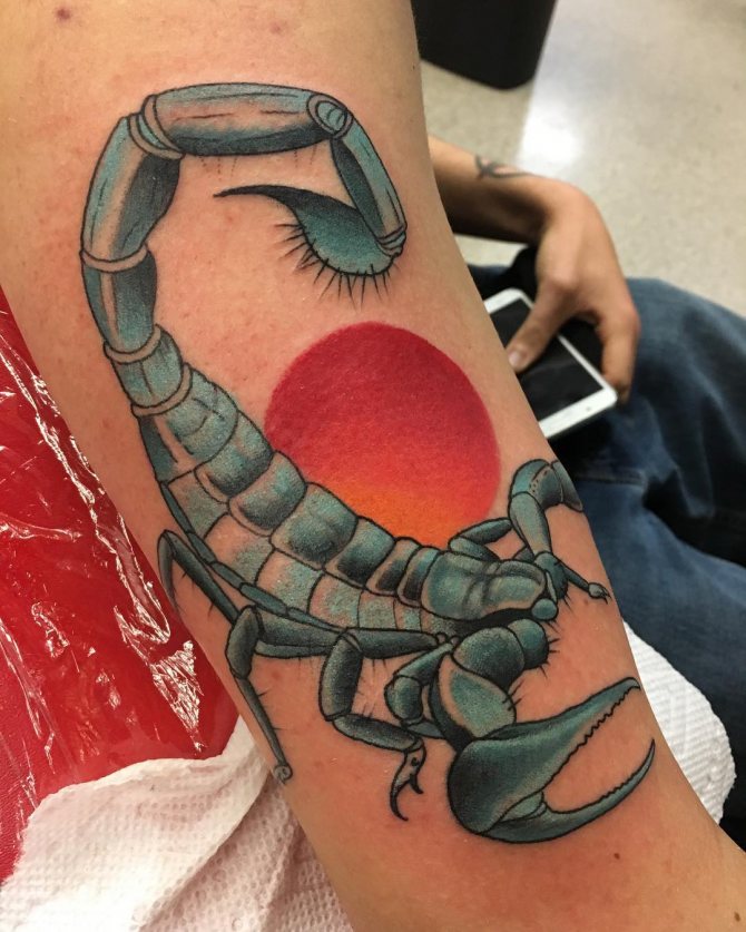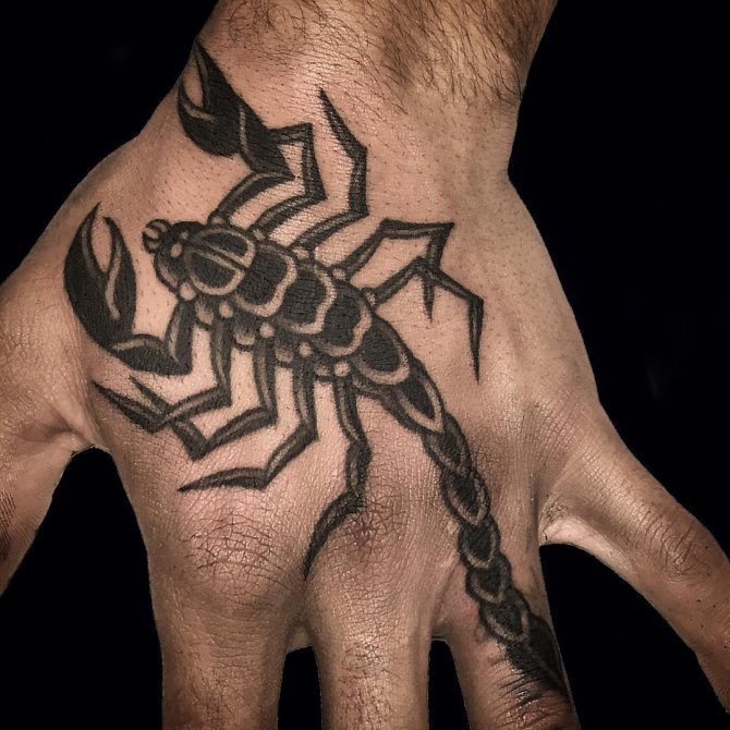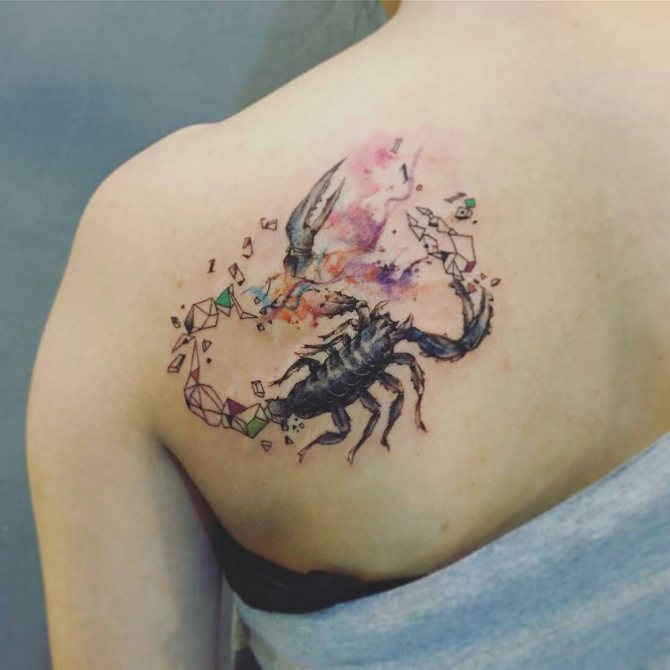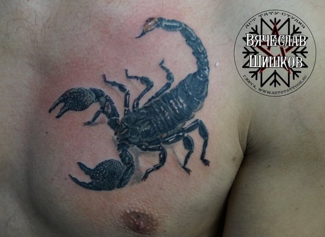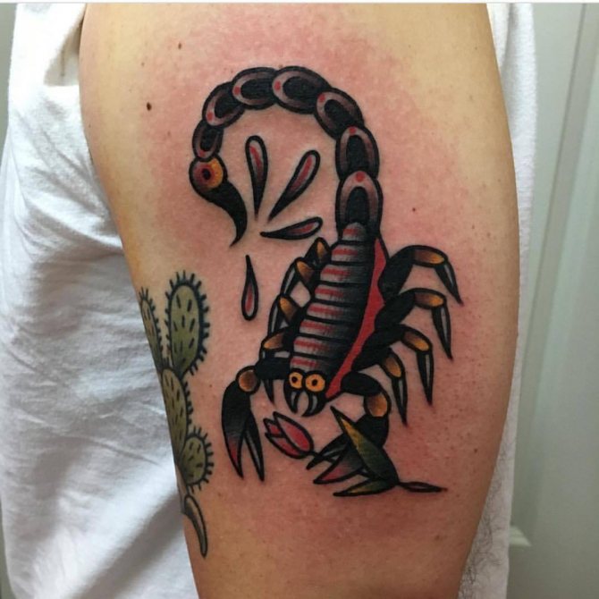 Le Scorpion fait référence à l'élément de l'eau et est sous le patronage de deux planètes - Mars et Pluton, ce qui affecte non seulement l'originalité de la personne née sous cette constellation, mais aussi la signification du croquis lui-même. En premier lieu, le tatouage Scorpion est une démonstration de force, d'endurance, d'arrogance et de capacité à atteindre ses objectifs à n'importe quel prix. Les propriétaires de ce tatouage sont ambitieux et fiers. Ils peuvent être des amis loyaux et des défenseurs courageux. La détermination, l'entêtement et la volonté sont parfaitement combinés dans une telle personnalité avec une bonne intuition, l'énergie sexuelle et la noblesse. Cependant, en dépit de ces qualités positives, les Scorpions sont très susceptibles, jaloux et rancuniers. Elles ne pardonnent pas la trahison, peuvent être très secrètes et ne craignent pas la solitude.