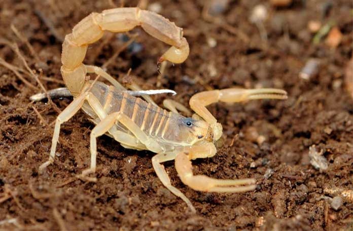 Le scorpion est venimeux. n'est pas toujours injecté. Le venin doit être épargné. Il faut beaucoup de temps pour s'en remettre. Les petits insectes sont donc tués en les tenant simplement par terre et en les déchirant. Ou devenir de la nourriture alors qu'il est encore vivant.