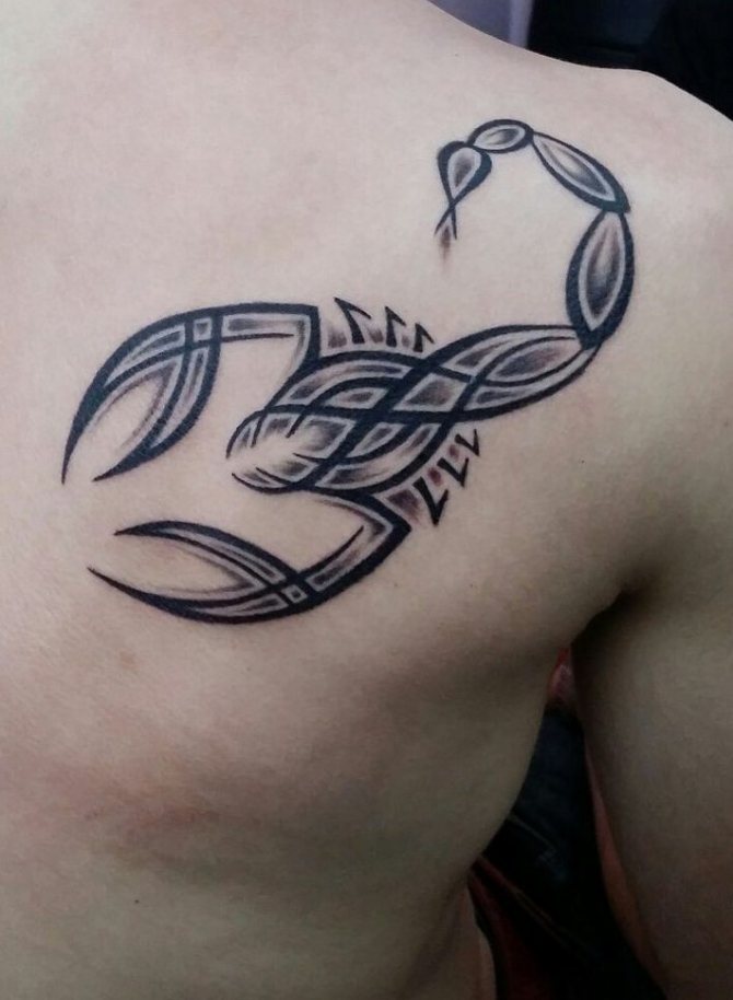 Le scorpion, un insecte de petite taille mais dangereux pour l'homme, entraîne depuis longtemps les gens dans la terreur et les fait trembler de peur. Avec son aiguillon venimeux, situé à l'extrémité de la queue de l'insecte, le scorpion peut apporter la mort non seulement à l'homme, mais aussi à un très gros animal. Dans les temps anciens, le scorpion était très craint, mais cet insecte était traité avec respect. Beaucoup de gens le vénéraient. On croyait que le scorpion chassait les mauvais esprits, aussi l'image de cet insecte se trouvait-elle sur de nombreuses maisons et habitations. Aujourd'hui, l'image du scorpion est souvent tatouée sur le corps. Et la signification d'un tel tatouage dépend de la forme, de la couleur, des détails qui l'accompagnent et de l'emplacement de l'image sur le corps.