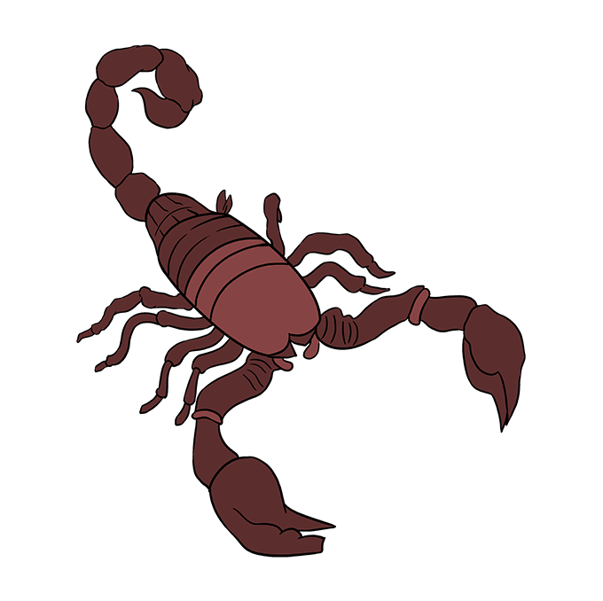 Les scorpions vivent dans une grande variété d'habitats, des jungles denses aux zones urbaines. Le plus souvent, cependant, ils sont associés au désert. Utilisez nos autres guides de dessin pratiques pour donner à votre scorpion un environnement désertique, avec des cactus, des coyotes et un cheval de cow-boy. ? ?