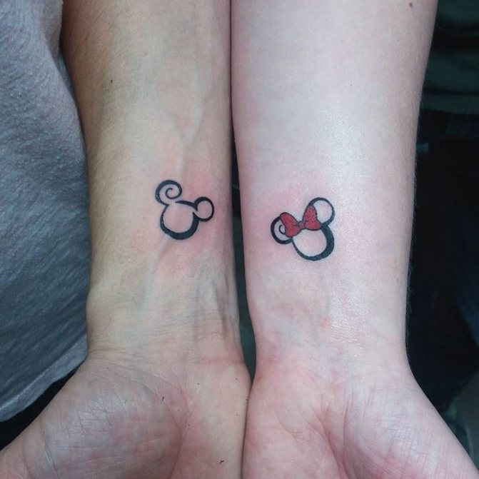 Si vous avez le sens de l'humour, vous pouvez opter pour un design amusant. Par exemple, une serrure et une clé, une pizza incomplète et une pièce manquante, des pièces de puzzle qui s'emboîtent. Ou des personnages de dessins animés comme l'écureuil et la cacahuète de L'âge de glace, Chip et Dale, Mickey et Mini.