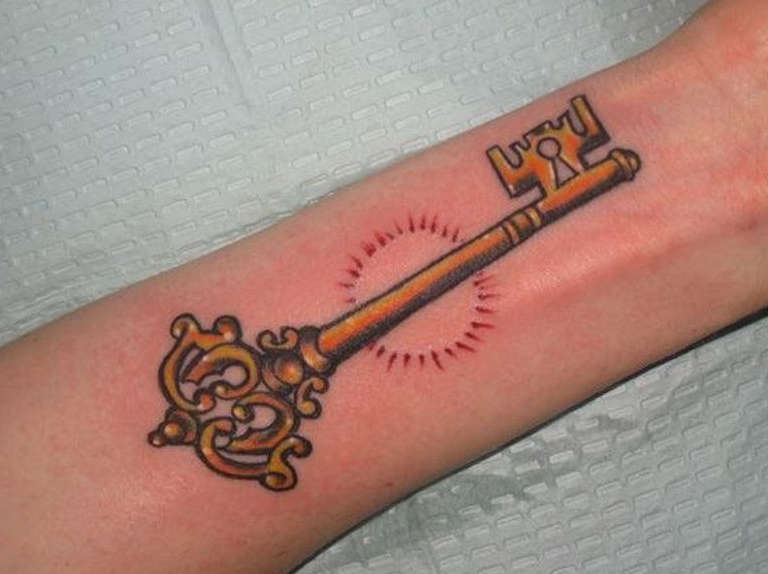 Sur l'avant-bras, un symbole tel qu'un fer à cheval sera idéal et aura l'air cool. Le signe zodiacal, divers animaux et plantes peuvent également être appliqués ici dans une belle composition.