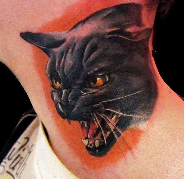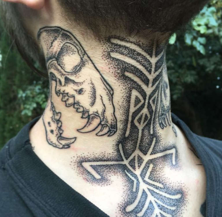 Si le but d'un homme en appliquant le tatouage est de gagner la reconnaissance, d'atteindre les sommets de l'activité professionnelle, d'attirer l'argent, alors il est préférable de le faire sur le cou. C'est ce que font le plus souvent les personnalités médiatiques pour accroître leur notoriété et leur popularité en plaçant des caractères, des inscriptions et des signes.