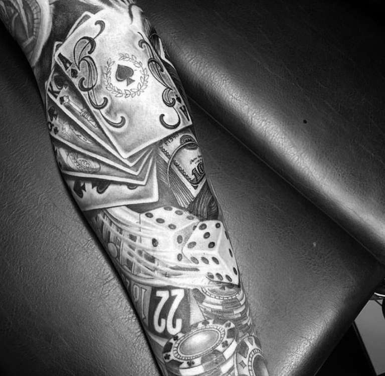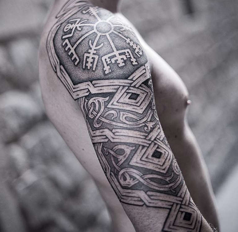 Une manche est un tatouage continu sur la main qui recouvre toute la main. Une toile artistique entière n'accepte pas un seul symbole ou élément, mais toute une chaîne de sujets. Il peut s'agir d'animaux, de différentes plantes, d'inscriptions runiques, etc.