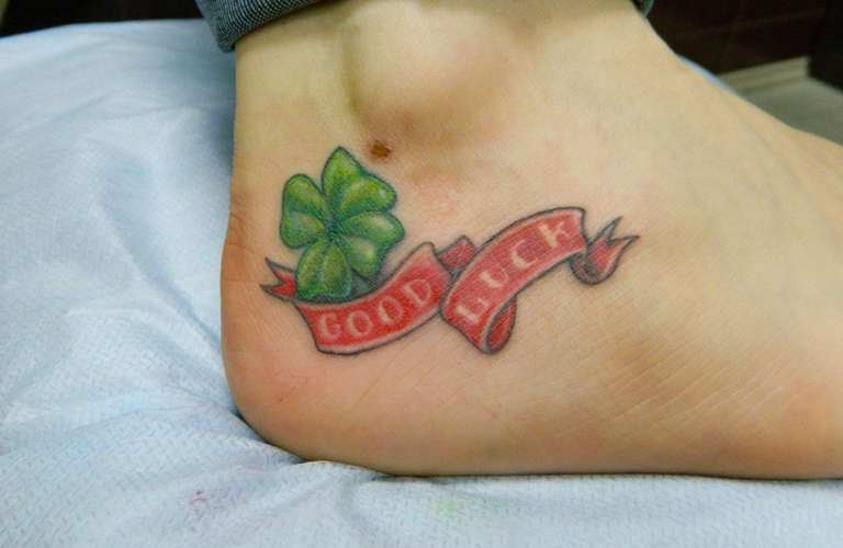 Une idée populaire sur le pied est un dessin de Saint Christophe, qui protège les hommes en voyage et en déplacement. En général, les symboles de richesse et de prospérité sont rarement placés sur les pieds, car ils sont trop éloignés de la tête et du cœur. Les talismans destinés à guider un homme sur son vrai chemin sont plus appropriés ici.