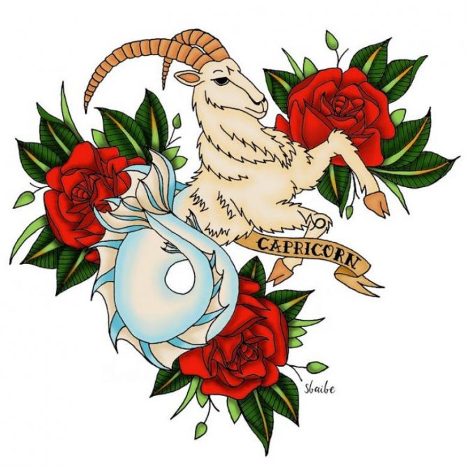 Important ! La couleur est un critère tout aussi important qui influence la signification du tatouage. Pour le Capricorne, un schéma de couleurs noir et blanc est plus courant. Les croquis de couleurs avec une prédominance de gris, de rouge, de jaune pâle conviendront aux natures jeunes et énergiques.