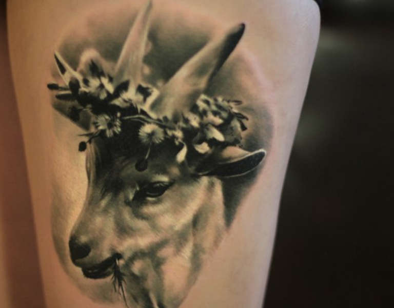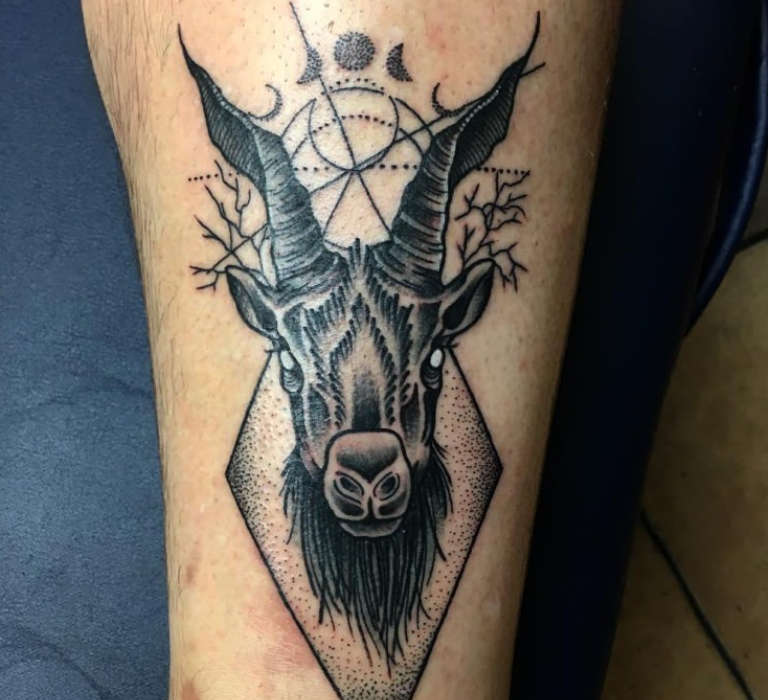 - S'il s'agit simplement de cornes, d'une tête de chèvre, vous pouvez réaliser le tatouage dans différents styles sur vos omoplates, vos cuisses, vos épaules ou votre avant-bras ;