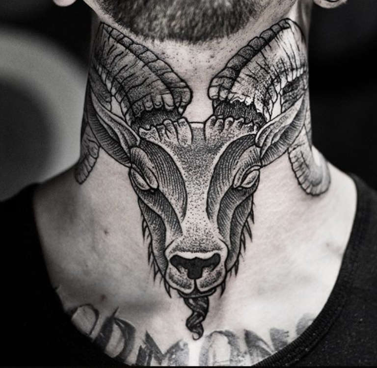 Sur le cou, le Capricorne cherchera idéalement et correctement à "travailler" sous la forme d'un symbole ou d'une inscription. Dans ce cas, le tatouage influencera correctement la réflexion, la perception et les pensées de l'homme, et contribuera au succès dans différents domaines de la vie.