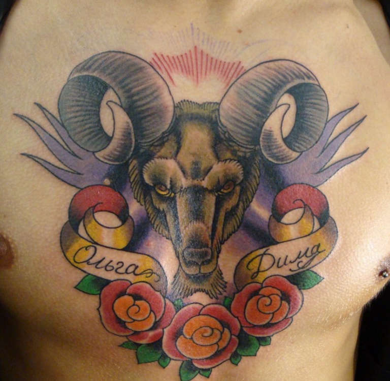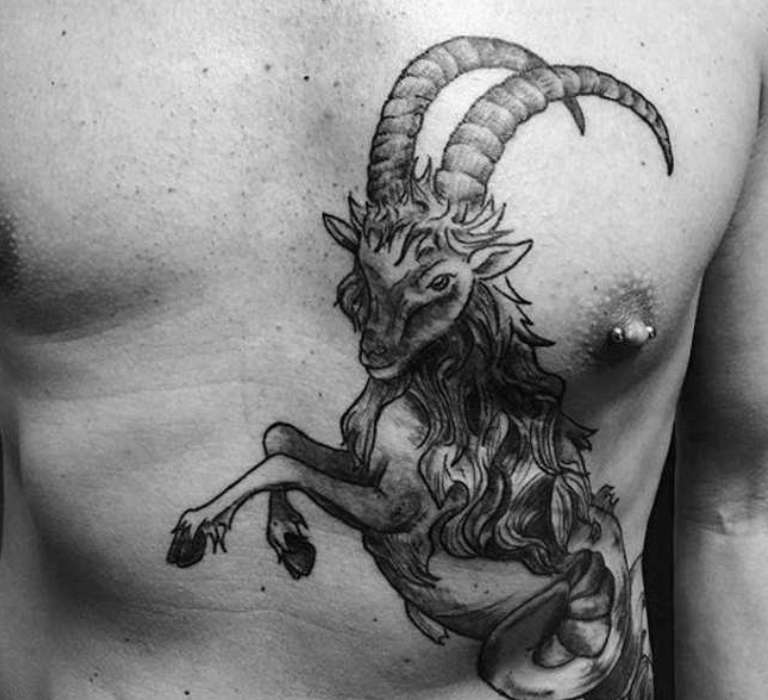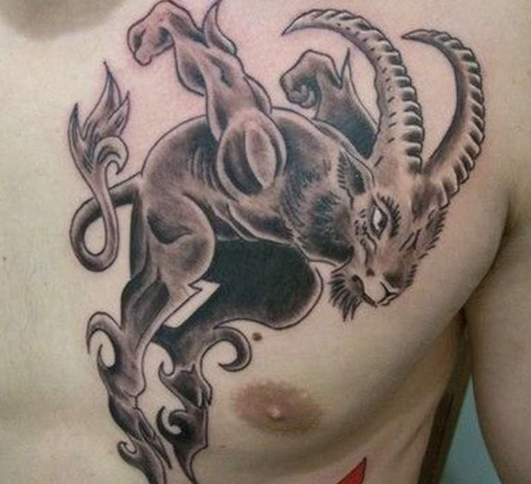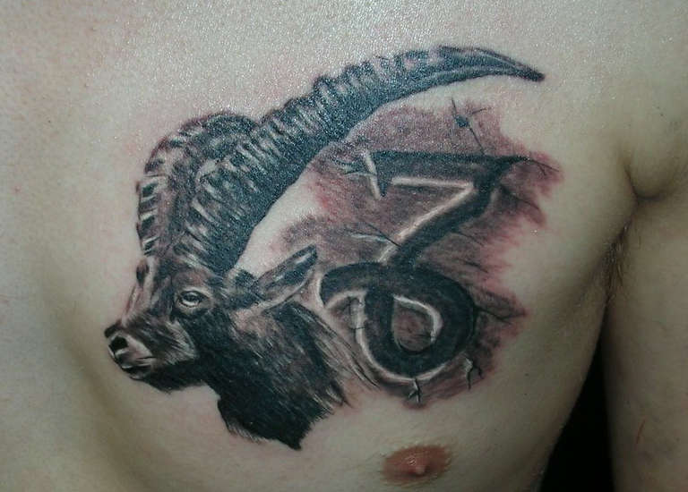 Le Capricorne sur la poitrine est le choix d'un homme infatigable, fort et déterminé. L'essentiel est de faire un croquis intelligent, de sorte que sa signification soit liée aux qualités positives du personnage, plutôt que d'exacerber la terreur naturelle des Capricornes, leur maladresse et leur entêtement.
