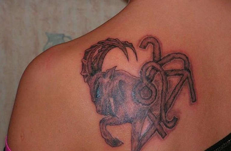 Le dos est rarement le symbole du signe du zodiaque Capricorne. S'il s'agit d'une chèvre, elle peut non seulement renforcer les qualités du personnage, mais aussi accentuer les faiblesses et les tendances négatives de la nature. Surtout s'il s'agit d'un croquis à grande échelle.