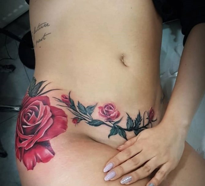 - Si, au cours du processus de tatouage sur le pubis, le dessin couvre les parties génitales, vous devez comprendre que leur sensibilité due à la cicatrisation peut être réduite.
