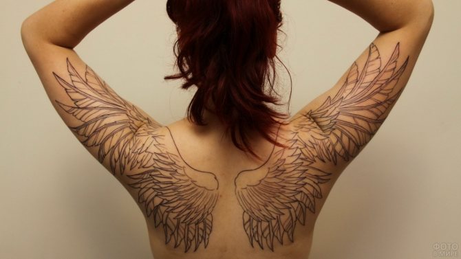 Ou demandez une sorte d'inscription en anglais en belles lettres le long du bras, du cou ou de la jambe. Certaines dames s'aventurent même dans des images de serpents ou de divers hiéroglyphes. Mais plus jolis sont les anges délicats ou les papillons colorés.
