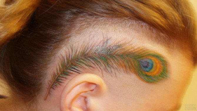 Tatouage d'une plume d'oiseau de feu sur sa tempe