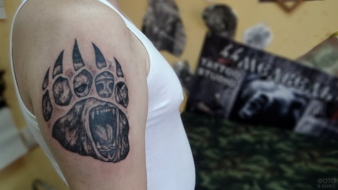 Tatouage d'une patte d'ours et d'une bouche souriante