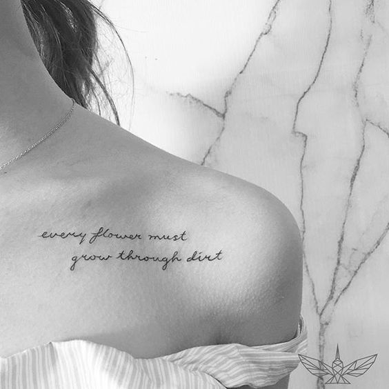 Pour l'application du texte dans une police exquise chez les femmes est le plus approprié leur zone gracieuse de la clavicule. Ces tatouages sont superbes, surtout lorsqu'ils sont réalisés correctement et en couleur.