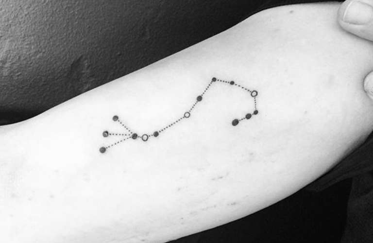 Un tatouage sur la zone de l'abdomen aura une bonne influence sur la vie et servira en quelque sorte d'amulette. La constellation est magnifique sur les côtes, les omoplates ou les pieds.