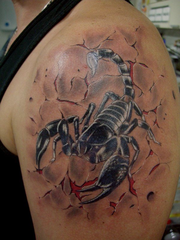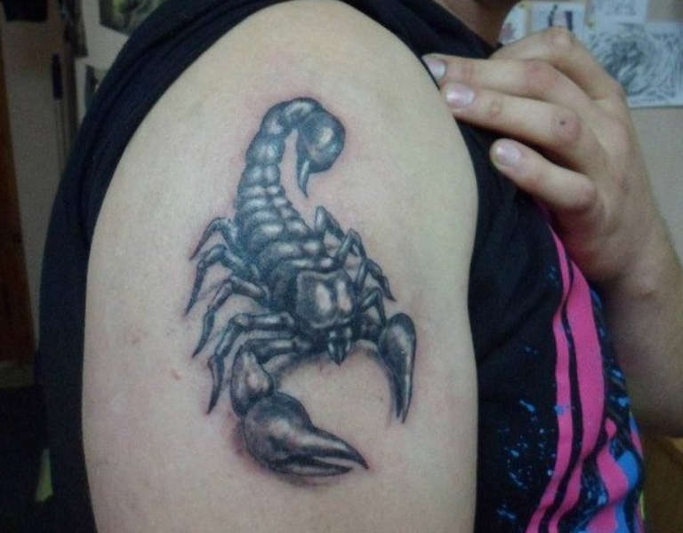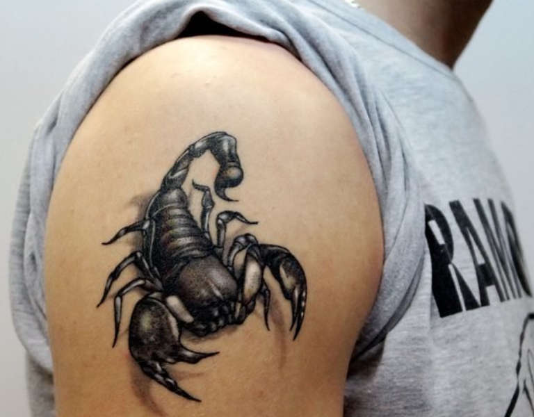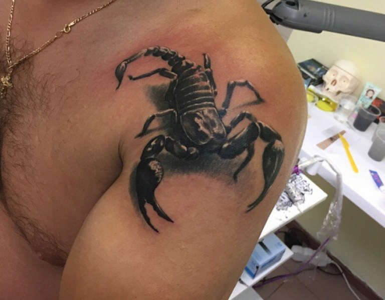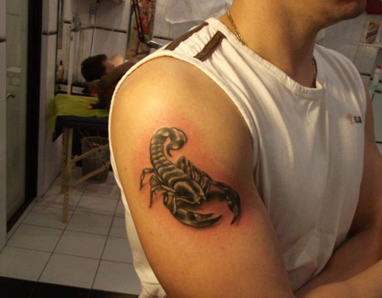 Un scorpion sur l'épaule est un indicateur de la fiabilité d'un homme, de sa volonté de résoudre tous les problèmes. L'animal suggère que la fermeté extérieure d'un homme peut cacher en son sein un dangereux prédateur.