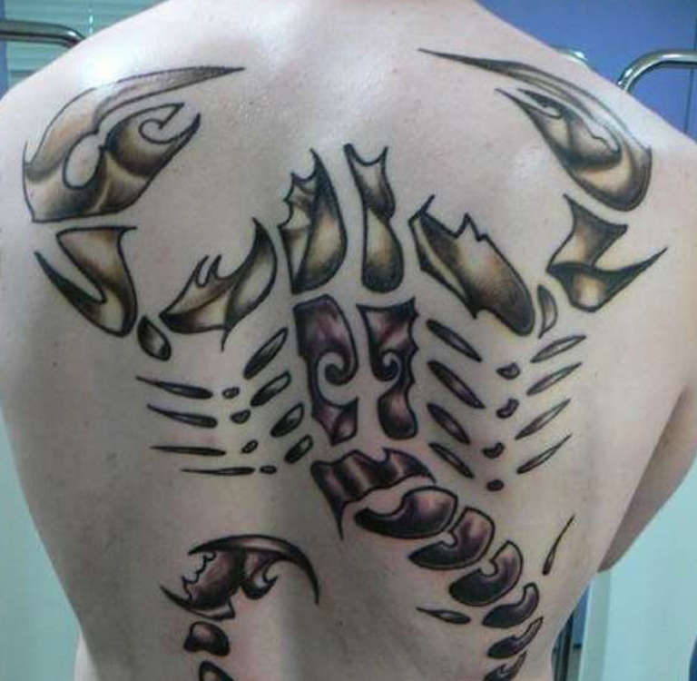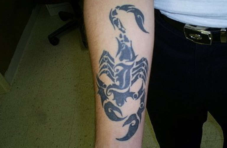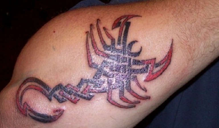 Un scorpion sous forme d'insecte est le plus souvent représenté sur le corps d'un homme. La queue relevée avec un aiguillon proéminent indique une volonté de défendre ses propres intérêts. Les grandes griffes symbolisent la protection du porteur contre les dangers extérieurs.