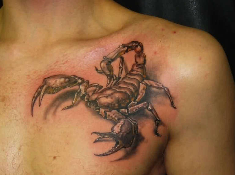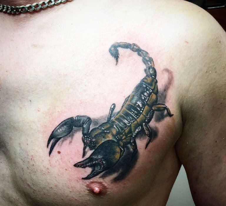 Des tatouages larges et vifs peuvent être placés sur la poitrine, comme la représentation d'un scorpion en tandem avec un autre personnage, un animal ou des symboles. Le côté gauche de la poitrine représente l'honneur et le courage, tandis que le côté droit représente le désir de protéger le cœur contre la trahison ou la déception d'un être cher.