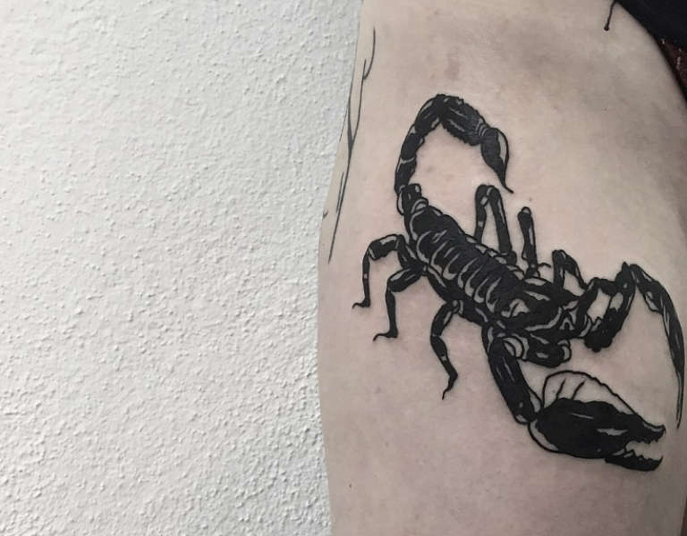 Un tatouage détaillé d'un scorpion dans une pose hostile est une indication de la cruauté du prisonnier, c'est pourquoi il vaut mieux l'éviter. Il convient de noter que, parfois, un tatouage de ce type a une interprétation complètement différente. Par exemple, un prédateur avec un dard relevé fait référence à une personne comme étant un ami loyal, fidèle et digne de confiance qui ne laissera jamais une personne en difficulté. Mais si le dard est en bas, alors il ne faut pas faire confiance à une telle personne, car elle pourrait trahir.