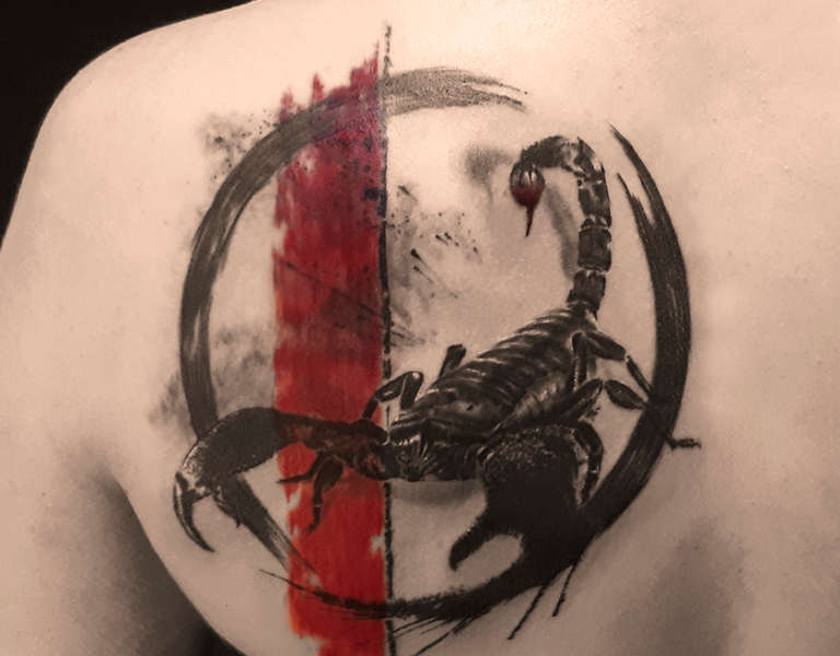 Les croquis avec un scorpion sont généralement réalisés en noir, mais l'ajout de rouge ou de bleu est autorisé. Quant à la technique, tout dépend de l'image qui sert de base : le scorpion lui-même ou un symbole de la constellation du zodiaque. L'esquisse de tatouage semble très naturelle grâce aux détails et au riche jeu de couleurs et de nuances. Les techniques de trayblade, blackwork ou celtique peuvent également être envisagées (voir les photos dans la galerie). L'abdomen est un bon emplacement pour un tatouage (surtout pour les personnes qui se tatouent comme talisman ou amulette). Cette disposition permettra d'activer l'énergie positive du tatouage. Le symbole de la constellation est mieux représenté dans un style minimaliste avec des lignes nettes et précises.