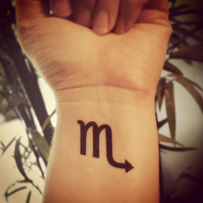 De la même manière, on peut recommander pour un tatouage le mot "force" ou "combat" (qui, soit dit en passant, peut également être recommandé pour le tatouage du Bélier, un autre signe martien), en combinaison avec le symbole-badge du Scorpion déjà mentionné. Ce motif, qui reflète bien l'intérieur d'une personne, est idéal pour le poignet.