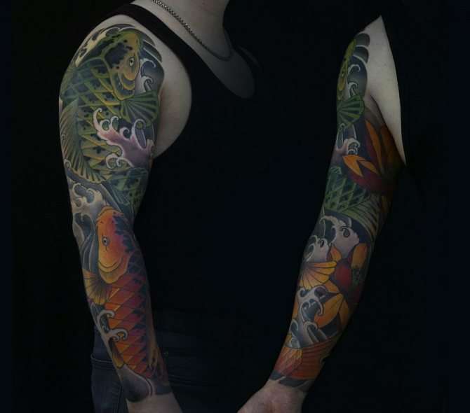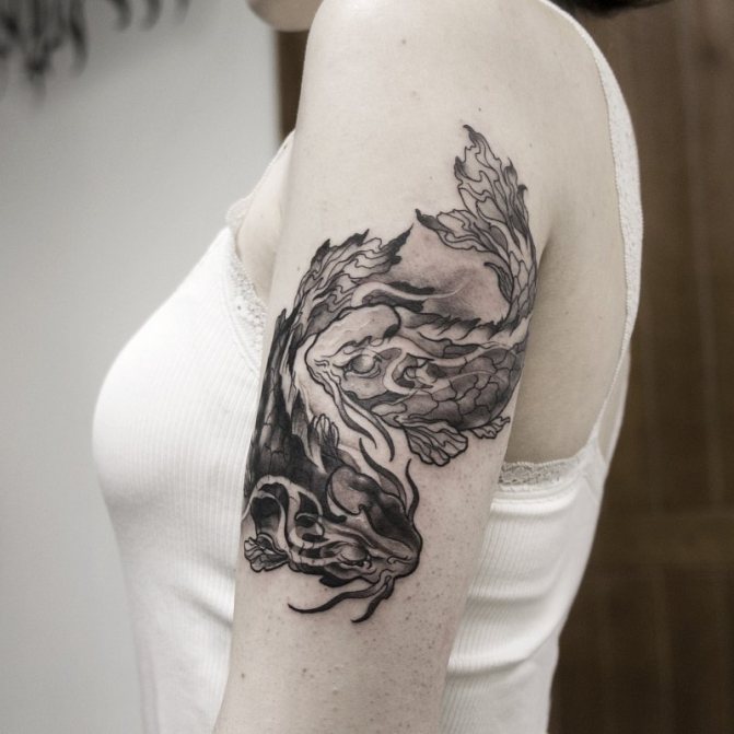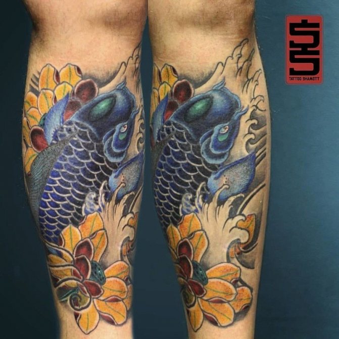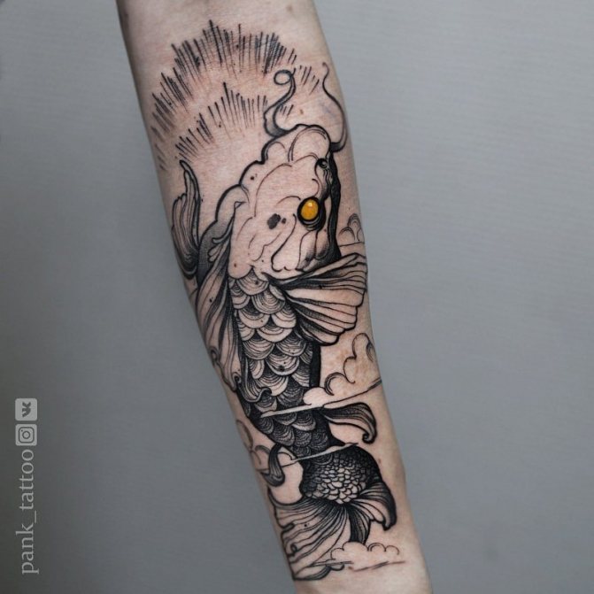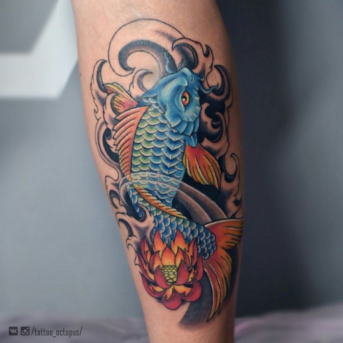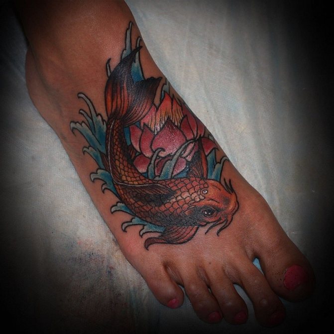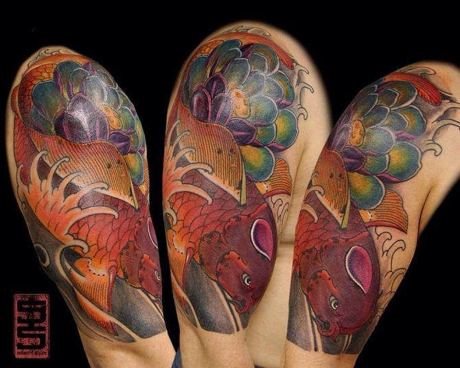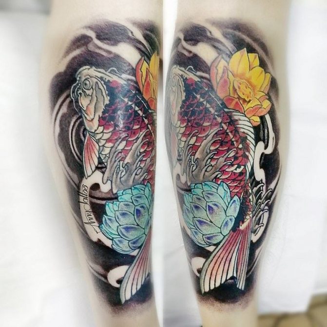 Un tatouage de ce style a une signification assez compliquée. Pour certains, c'est un signe de paix et de tranquillité tandis que d'autres considèrent le poisson comme l'émeute de la mer. Chaque signification est correcte à sa manière et la signification qu'une personne choisit pour elle-même, déterminera son tatouage. Ce tatouage peut en dire long sur son propriétaire. Tout d'abord, ce format de tatouage fait vraiment rêver les gens, surtout lorsqu'il s'agit de représentants du signe zodiacal du poisson. Le tatouage est également considéré comme un symbole de fertilité.