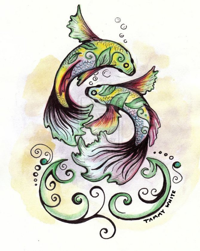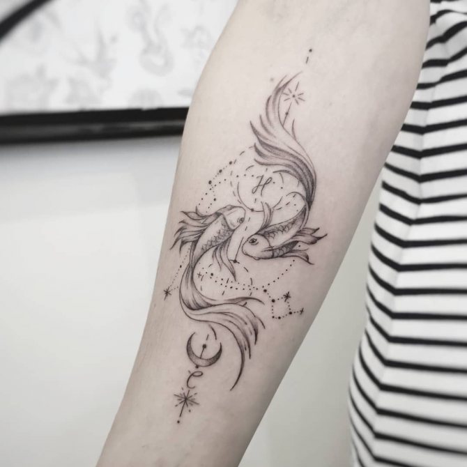 Lorsqu'elle se fait tatouer un signe du zodiaque, une personne veut indiquer des qualités telles que l'originalité, l'attrait créatif, la clarté de pensée, le bien-être moral et matériel et la protection contre les épreuves et l'adversité. Si une personne née sous ce signe effectue un tatouage approprié, elle s'attirera la chance, la sagesse, la sécurité et le succès dans les affaires. Ces tatouages peuvent être réalisés sous la forme de deux poissons ou d'un symbole ancien.