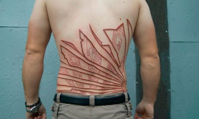 Percer le tatouage sur le dos est plutôt désagréable, en particulier se sentira la douleur dans les omoplates et les côtes, mais pour le bien de l'art peut être toléré.
