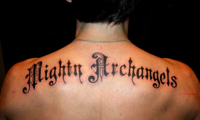 Le dos est considéré comme une bonne zone pour les grands tatouages. Vous pouvez y placer une inscription qui ne convient pas à d'autres parties du corps.