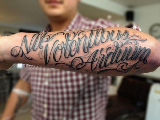 - Coût. Le prix d'un tatouage sur le bras sous la forme d'une inscription peut varier considérablement. Si vous avez choisi une grande police et que vous prévoyez de placer le texte sur toute la surface de l'avant-bras, la valeur de la phrase sera considérablement plus élevée que pour une petite pièce de poignet.