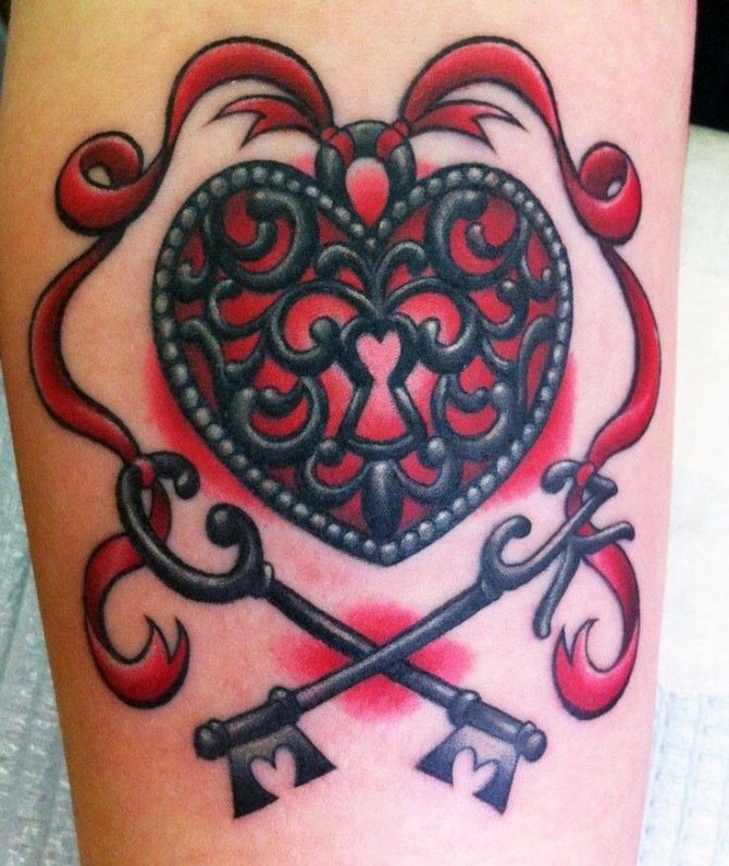 Aujourd'hui, le cœur est traditionnellement associé à avec la compassion, la réactivité, la prévalence des sentiments sur la voix de la raison. Dans les tatouages, l'interprétation dépend largement de la couleur du cœur, de son emplacement et d'éléments décoratifs supplémentaires.