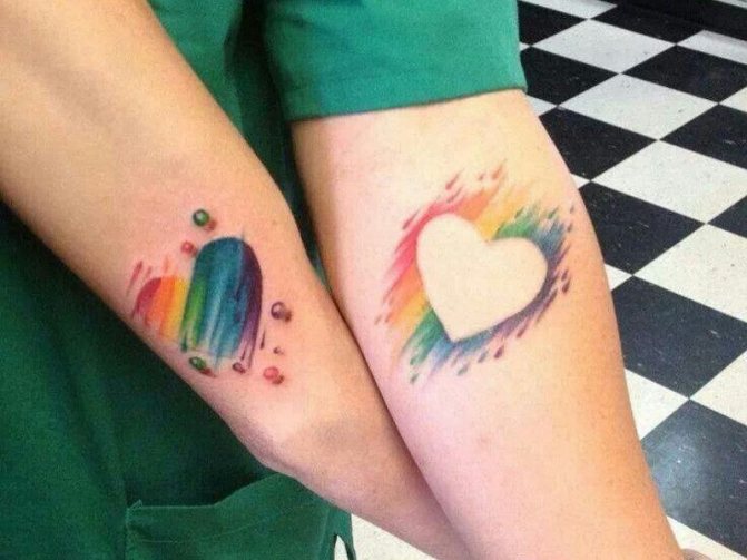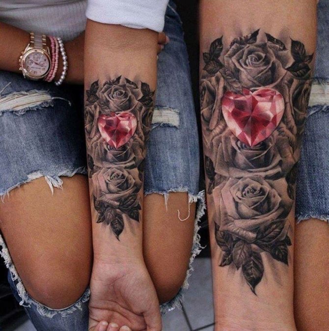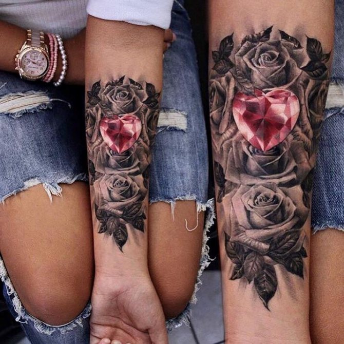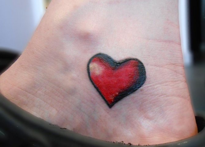 Le tatouage "cœur" est souvent demandé par les filles pour être placé sur le poignet. Dans ce cas, une image de la tendresse et de la sophistication de la propriétaire.