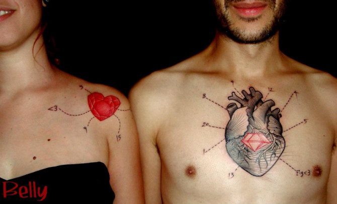 L'imagerie cardiaque sur la poitrine est plus fréquente chez les hommes. Dans ce cas, les gars font le tatouage dans la zone, située non loin de l'emplacement de l'organe réel.