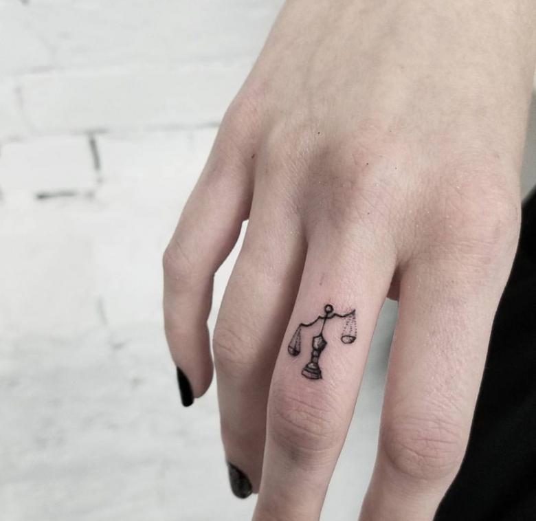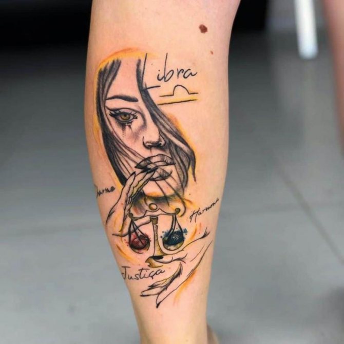 Malgré les détails, tatouage du signe de la Balance représentent en tout cas le rapport entre le bien et le mal, la justice et la discipline.